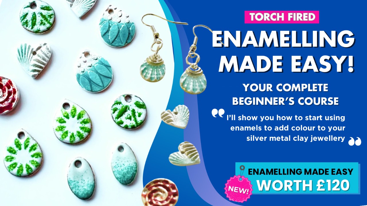 Enamelling Made Easy is already a best-seller with my students. Discover how easy it is to add a pop of colour to your silver metal clay pieces and the best news, if you don't have a kiln, you can make everything that you can see with just a hand held torch. You'll be amazed at how easy it is to add enamels to your jewellery.