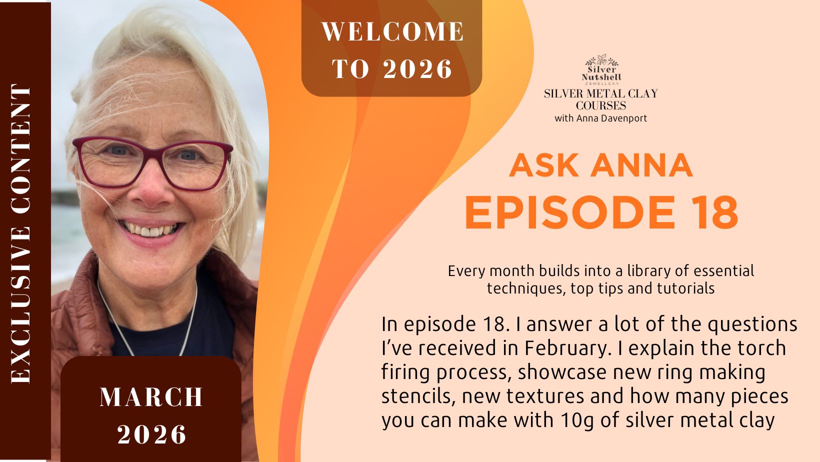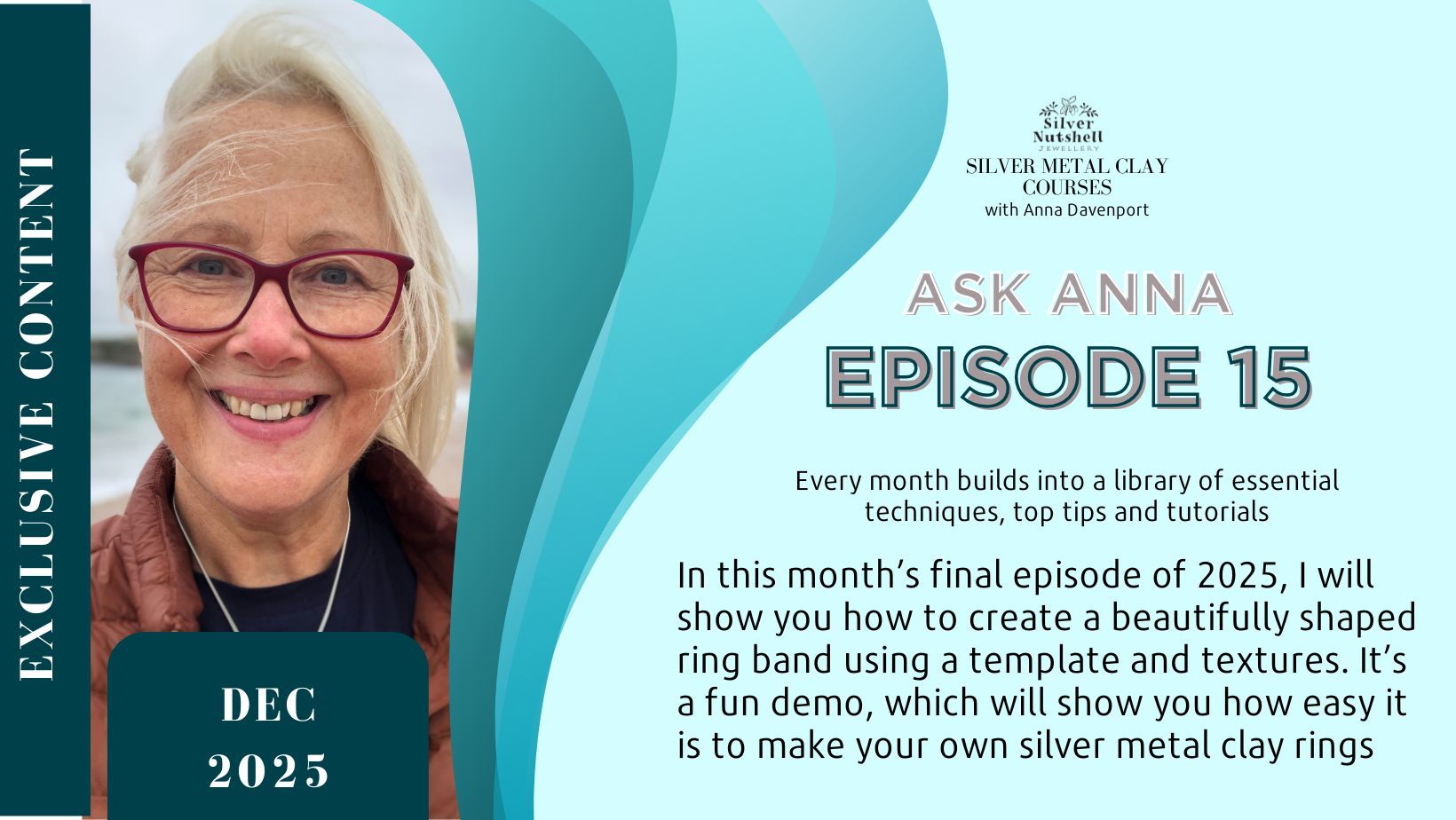 You're most likely here to watch my Q&A feature, ASK ANNA! I love recording these videos, which are only available to members. I'll be adding a new video every month. Every episode will include approx 25 minutes of chat, where I answer some of your silver metal clay questions, explain in more detail about techniques and show you some of the tools and equipment that I am using. It's going to be super informative and a lot of fun! See below for what's coming up in each episode. Click the link to watch it as many times as you like!