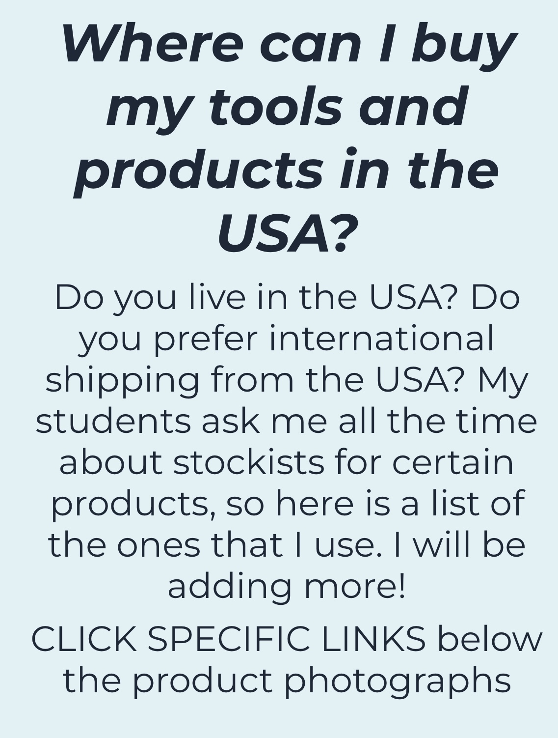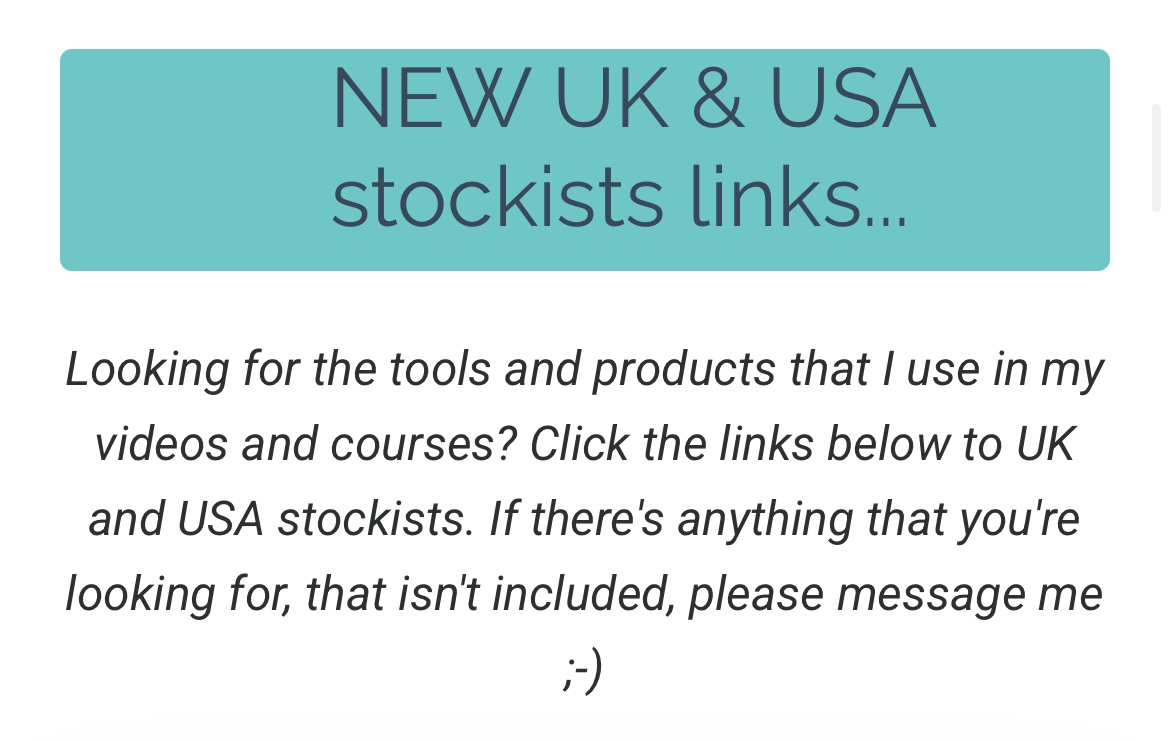 I've created two stockists pages which are packed with links to many of the products that I use. I have build separate pages for the UK and the USA so that I can add to these pages and share more tools and products with you.