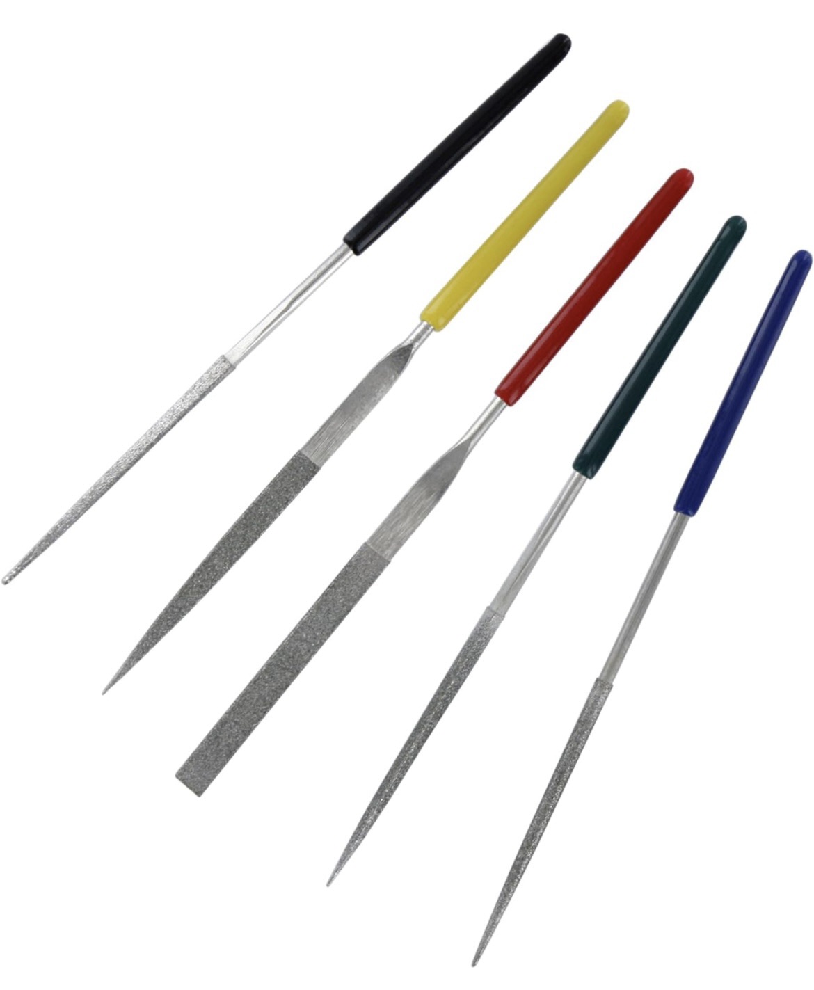 Click this link to Miniature Diamond Files >> I have had a set of these for years and they are great for filing away excess clay, at the same time as filing back any texture or pattern. For example on the join of a ring band. I mainly use the round and flat files from the set. They get into tiny areas of a piece and as they're small, they fit well in my hand when I'm finishing a piece before torch firing.