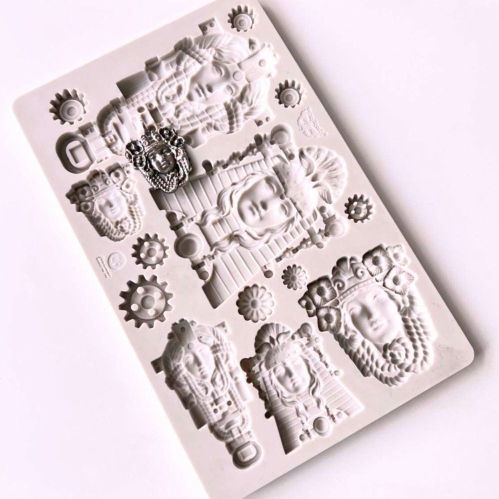 This is another beautifully detailed mould with faces. I use it to capture the eyes and make strip rings using just a part of the face. Always use liquid release agent so the clay doesn't stick inside the pattern.